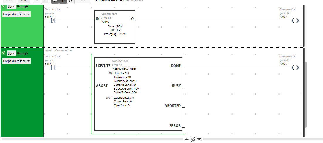 Câbler seulement le PC et l'automate, envoyer des trame "fait maison" depuis le PC et voir si l'automate intercepte quelque chose ca peut aider aussi a trouver la bonne config.