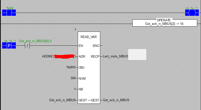READ_VAR(ADDM('0.0.3{192.168.1.100}TCP.MBS'),'%MW',1000,16,%MW0:4,%MW100:16);