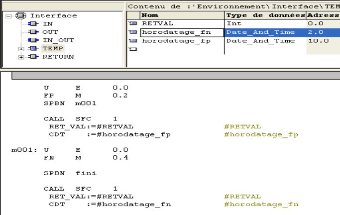 Je cherche a extraire la date et heure de la CPU: D'abord j'ai inséré le SFC1 ainsi que le FC6 et FC8 de la bibliothèque. Ca fonctionne bien.