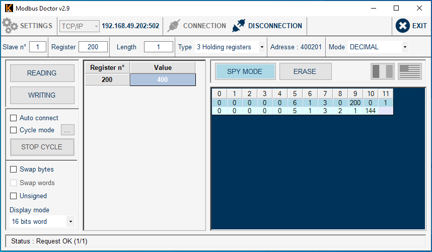 Je ne comprends vraiment pas. Pourtant avec Modbus Doctor ça fonctionne.