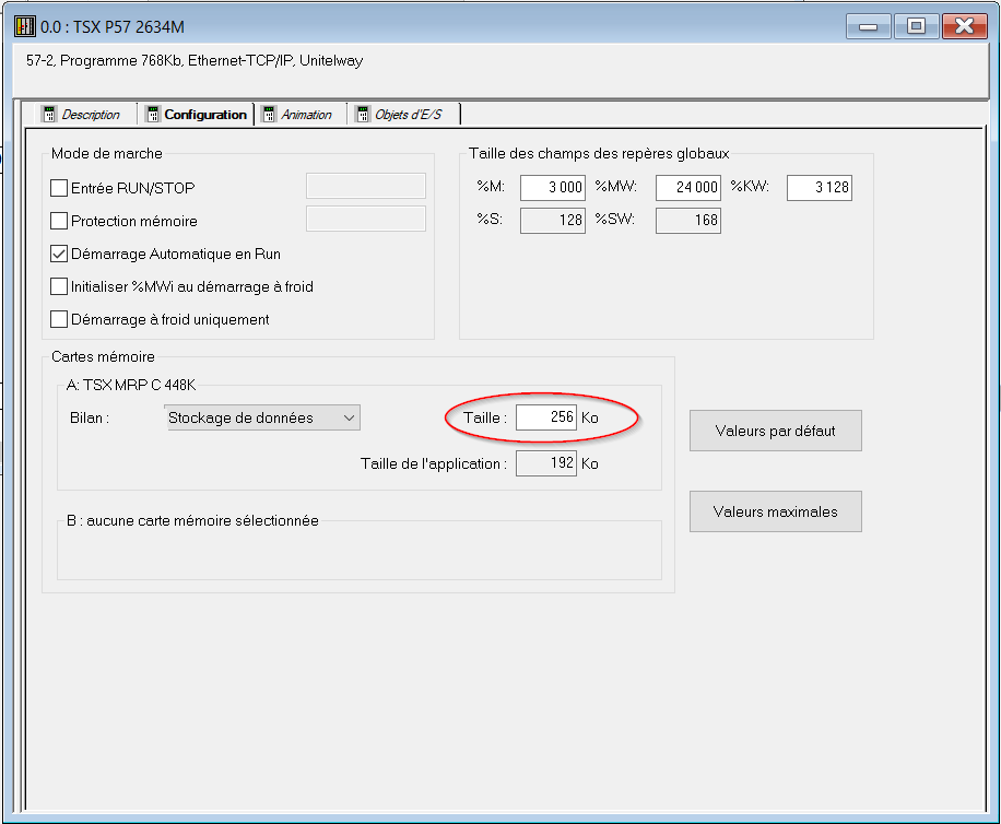 Du point de vue de PL7 Pro, pour avoir 256 kmots il faut une carte TSXMRPC001M minimum (je te conseille TSXMRPC01M7).