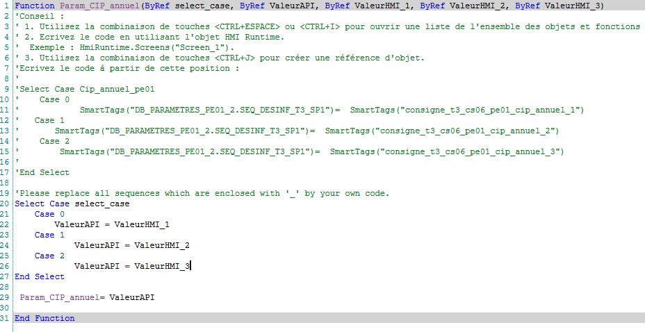 Sub MajReel() Select SmartTags(SmartTags("Index")) Case 0 SmartTags(SmartTags(NomVarAPI)) = SmartTags(SmartTags(NomVarSource1)) //Etc... End