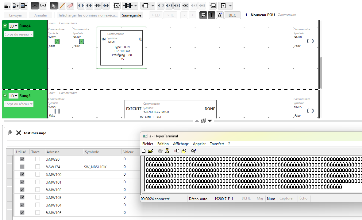 J'ai essayé d'envoyer une trame en envoyant des chiffres 1 ou 2 comme tu m'as dis avec RX et TX entre automate et PC et j'ai toujours 0 en %sw174.