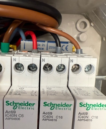 Comme vous pouvez le voir, il y a 3 disjoncteurs monophasé (2 en 16A et 1 en 6A).