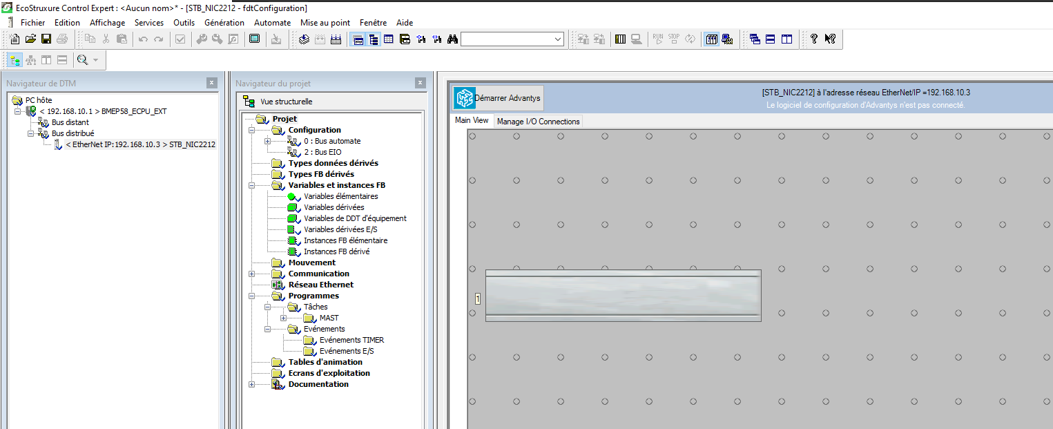 - utiliser le DTM Advantys (qui permet d'encapsuler le projet Advantys STB dans l'application Control Expert)