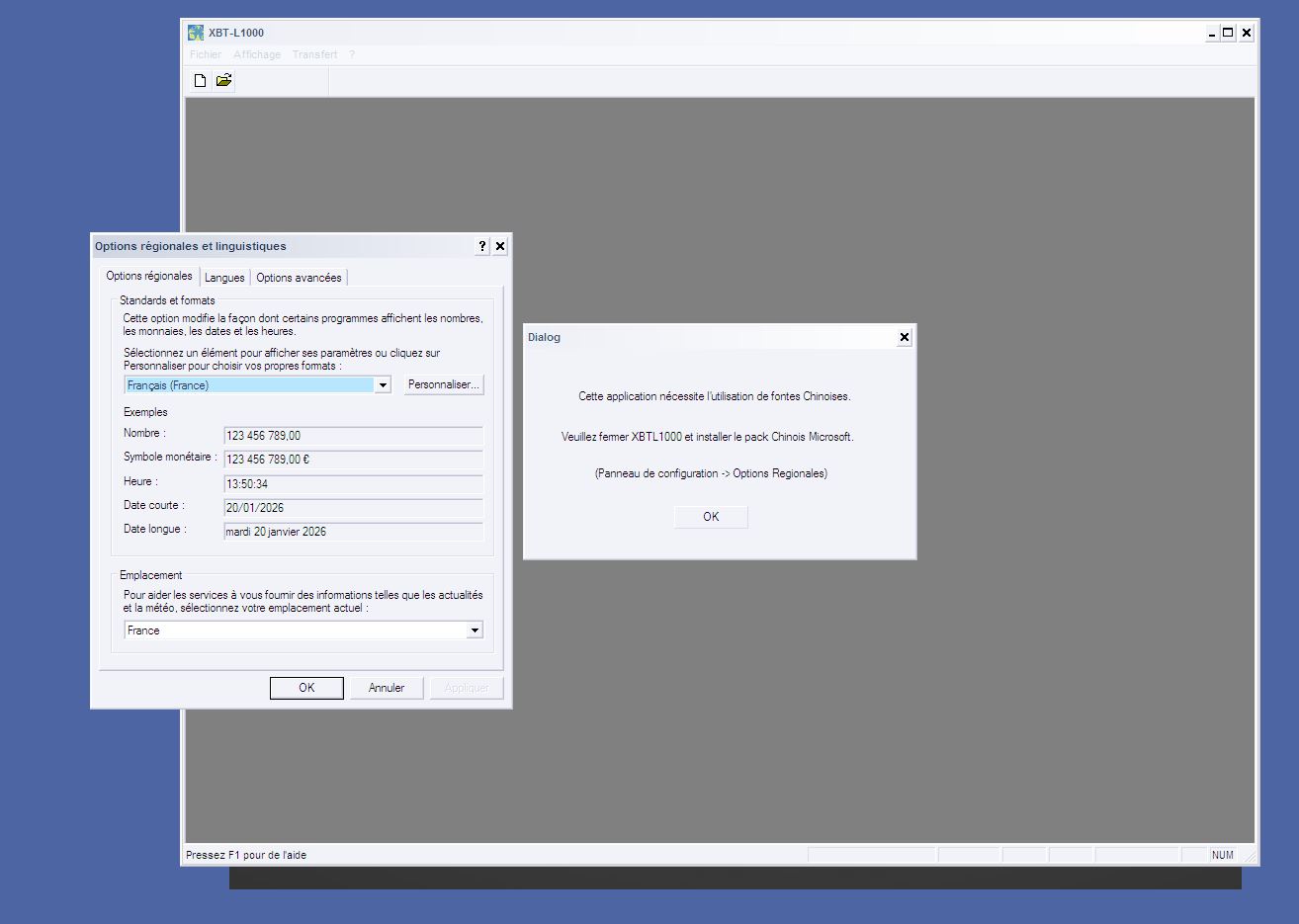 Cette application nécessite l'utilisation de fontes Chinoise Veillez fermer XBTL1000 et installé le pack chinois Microsoft ????
