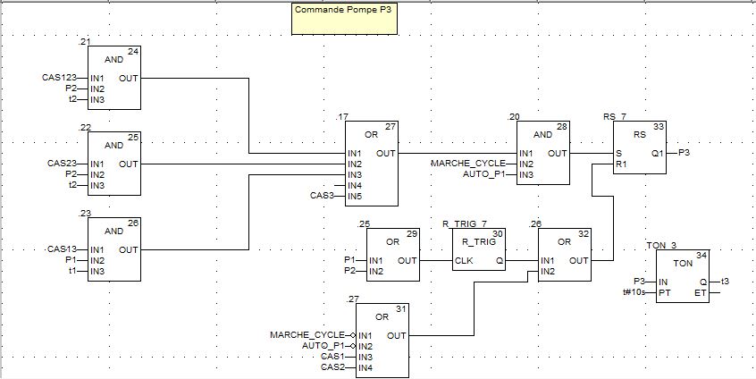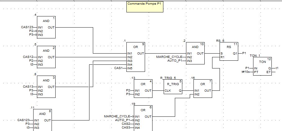Sur le simulateur Unity Pro, ça fonctionne sur mon PC. Je n'ai pas voulu encapsuler la commande des pompes dans un gros bloc FBD ce qui reste tout de même faisable.
