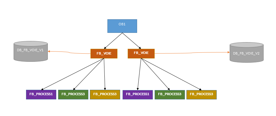 C'est bien ça, le FB n'utilise que ses variables locales et la différence voie1/voie2/voieX se fait sur les entrées du FB_VOIE.Les FB sont la pour ça. Le programme de ton FB ne doit utilisé que les variables du DB d'instance. et la différence se fera sur les entrées sorties de ton FB .