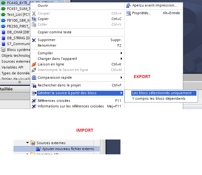 gnerer un fichier source à partir d'un FC pour modification dans TIA PORTAL