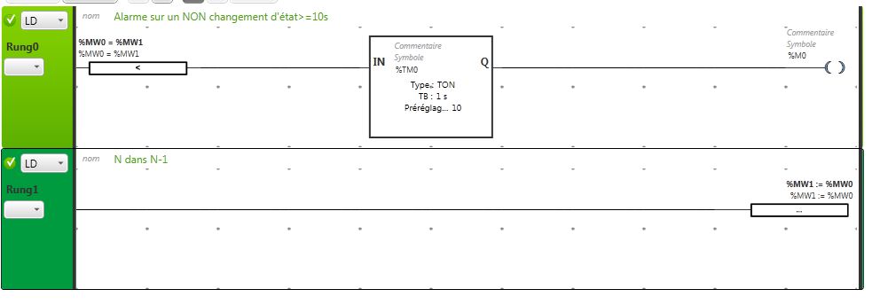 je voudrais dire grâce à une temporisation de 10 seconde par exemple que si ma valeur est toujours à 10 il y à un défaut. Il faudrait qu'à chaque changements de valeur ma temporisation se réinitialise.