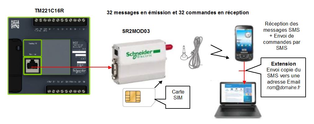 + la réception de SMS de commande vers l’automate pour des actions à distance (Lecture des données, Arrêt, marche , ect.....) A paramétrer et personnaliser en fonction du contexte, le demander si le besoin s’en fait cruellement sentir.