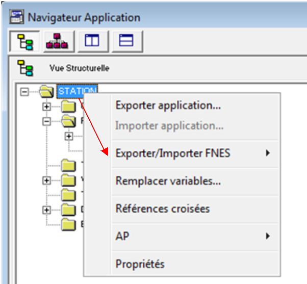 Dans STATION clic droit faire exporter/importer FNES / Exporter FNE