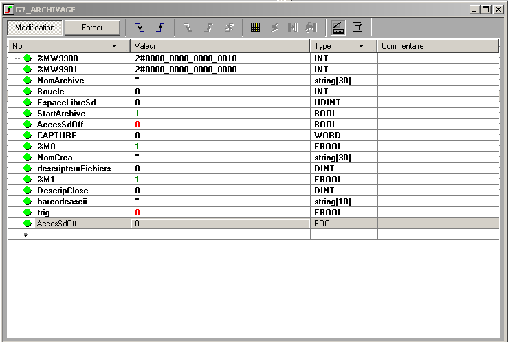 Oui je comprends bien mais il ne semble pas trouver de carte. Car %S65 (AccesSdOff) est bien sur off et dans le simulateur le voyant "Accès Carte" est en ON.