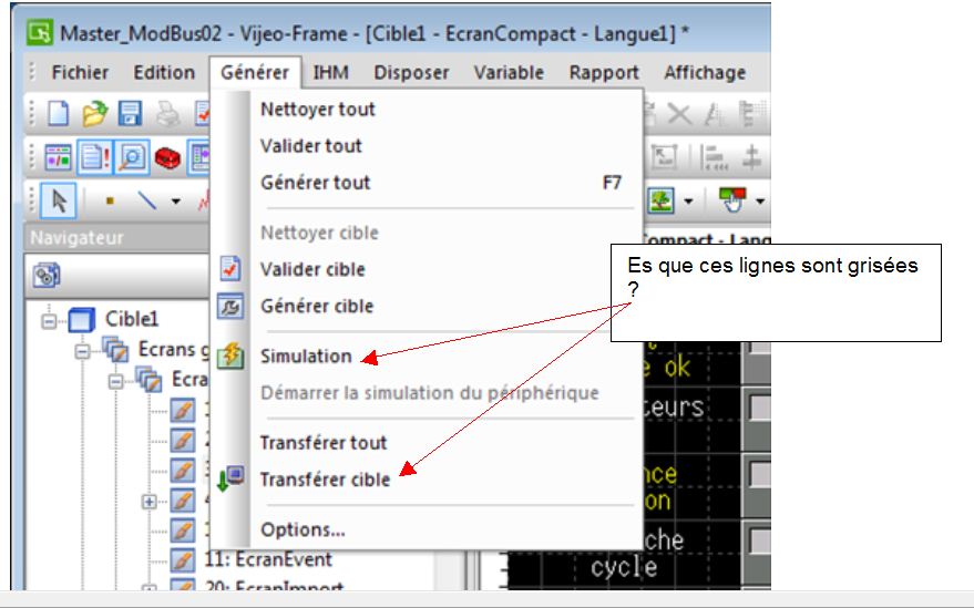 EX: Générer / Simulation ou Générer / Transférer