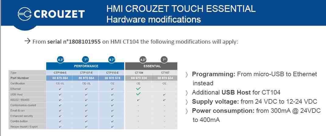 Je vous remercie pour ce retour. Je pense que ce sont les anciens CT104 qui ne communiquent pas en Ethernet et non pas les nouveaux CT104 qui ont un numéro de série supérieur à n°1808101955. Voici un extrait de la documentation qui montre cela.