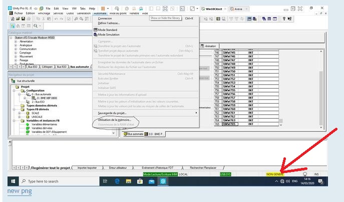 Pourquoi je n'arrive pas dans mon projet a cliquer sur "Visionneuse de la RAM d'etat" ?