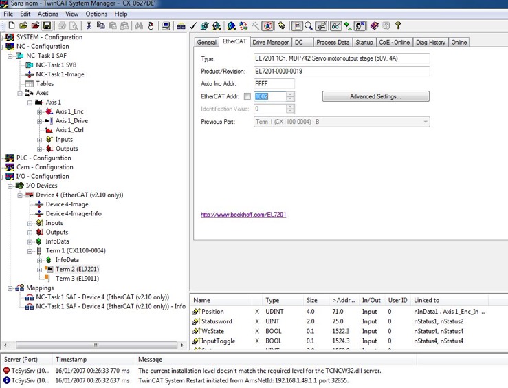 Toujours dans mon éternelle quête de faire tourner mes moteurs Beckhoff, je me heurte à un truc que je ne sais pas interpréter...
