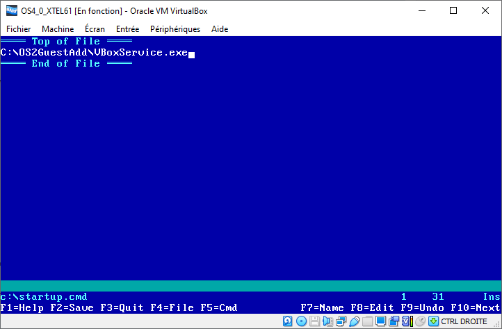 Quoi qu'il en soit, ajouter cette ligne à la fin du fichier- C:\OS2GuestAdd\VBoxService.exe