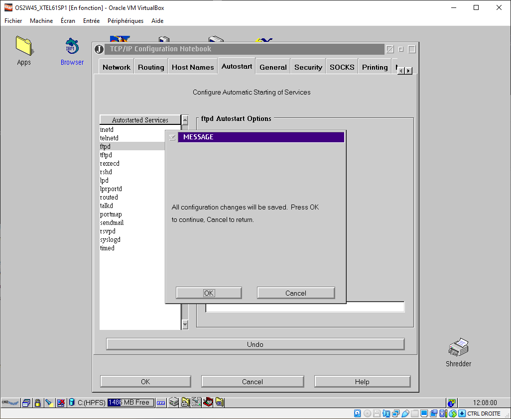 - Démarre la machine et rentre dans le menu "OS/2 System > System Setup > TCP/IP Configuration (Local)"