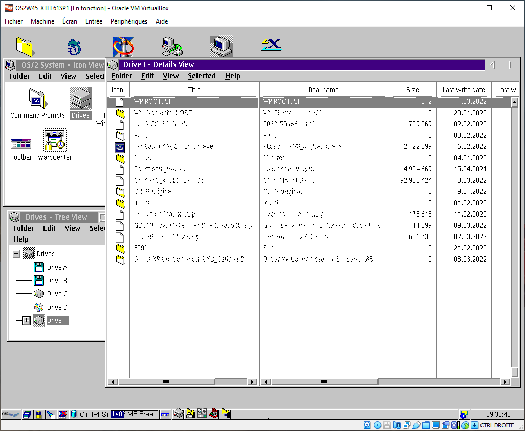 Note importanteSelon le formatage utilisé, un fichier WP ROOT. SF et/ou EA ROOT. SF va être crée par OS/2. Il sera visible sous l'hôte également.
