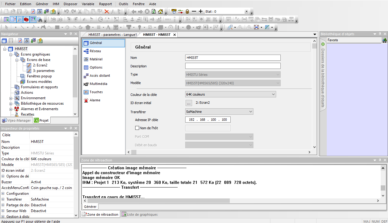 - J'utilise un M241 et un HMIS5 (schéma) . - Au niveau de l'ip : HMIS5t : 192.168.100.100 / M241 :192.168.100.5 / PC: 192.168.100.200 et masque de sous réseau: 255.255.255.0