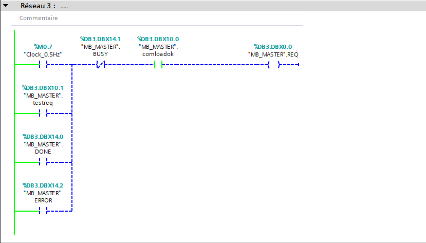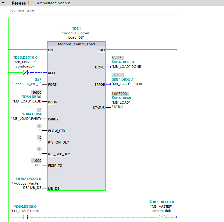 (Comme vous pouvez le voir sur la capture d'écran, le commutateur "Modbus_Comm_Load" est sur "DONE" car le "MB_MASTER_comloadok" est actif).