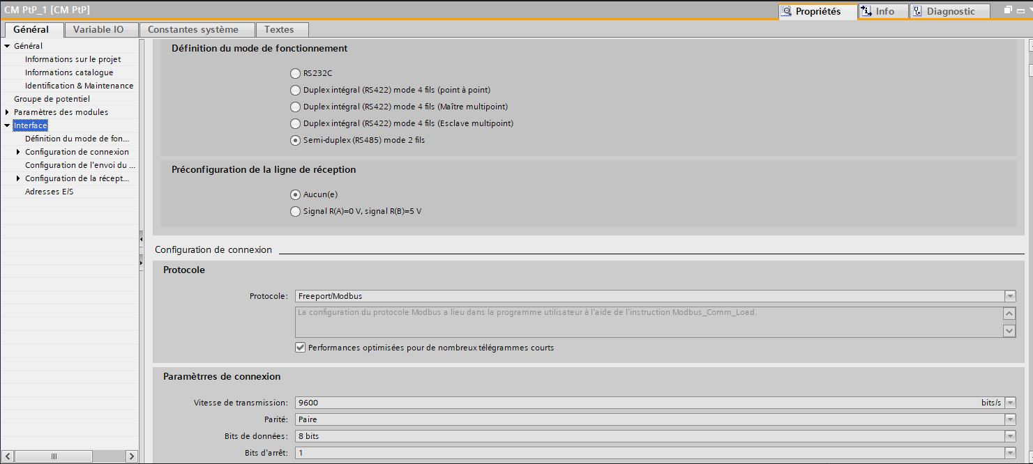 J'essaie de faire une communication entre un CPU 1512SP-1 avec un module de communication CM PtP (6ES7137-6AA01-0BA0) et une centrale de détection de gaz en Modbus RTU (RS485).