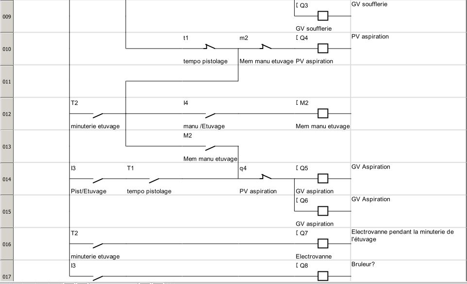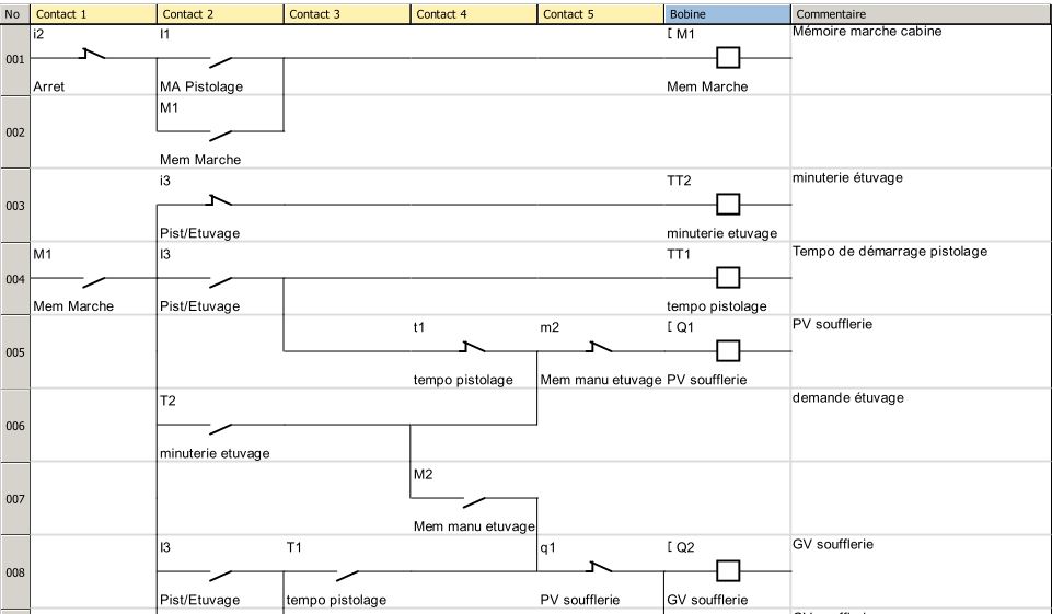 Tu peux t'en inspirer mais ça n'est qu'une version pour te montrer la façon dont on peut programmer avec le logiciel, tu remarqueras que l'on peut utiliser plusieurs fois des contacts d'une même bobine, ou utiliser des mémoires(M).