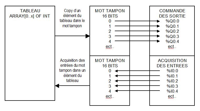 EXEMPLE: pour commander les sorties 0 et 1 je met la valeur numérique 3 dans mon ARRAY[0..x] OF INT (ya pas de STRING)