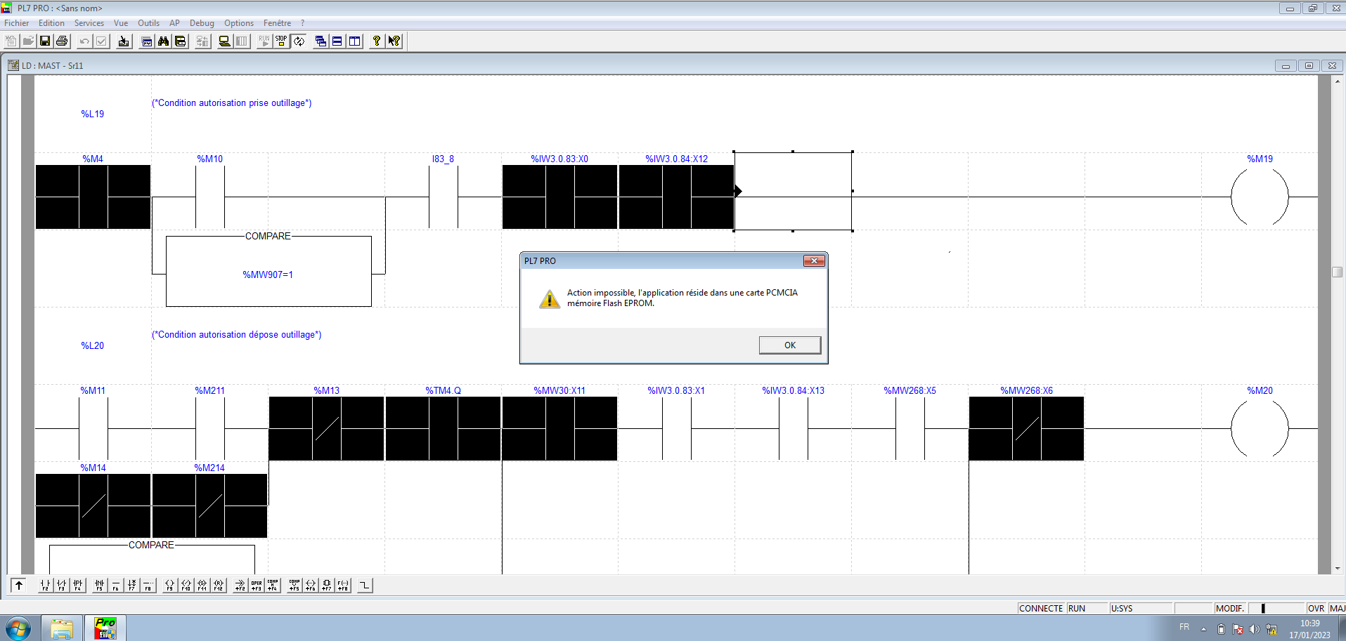 Lorsque je veux faire une modification en ligne, sans arrêter l'automate, j'ai ce message d'erreur :