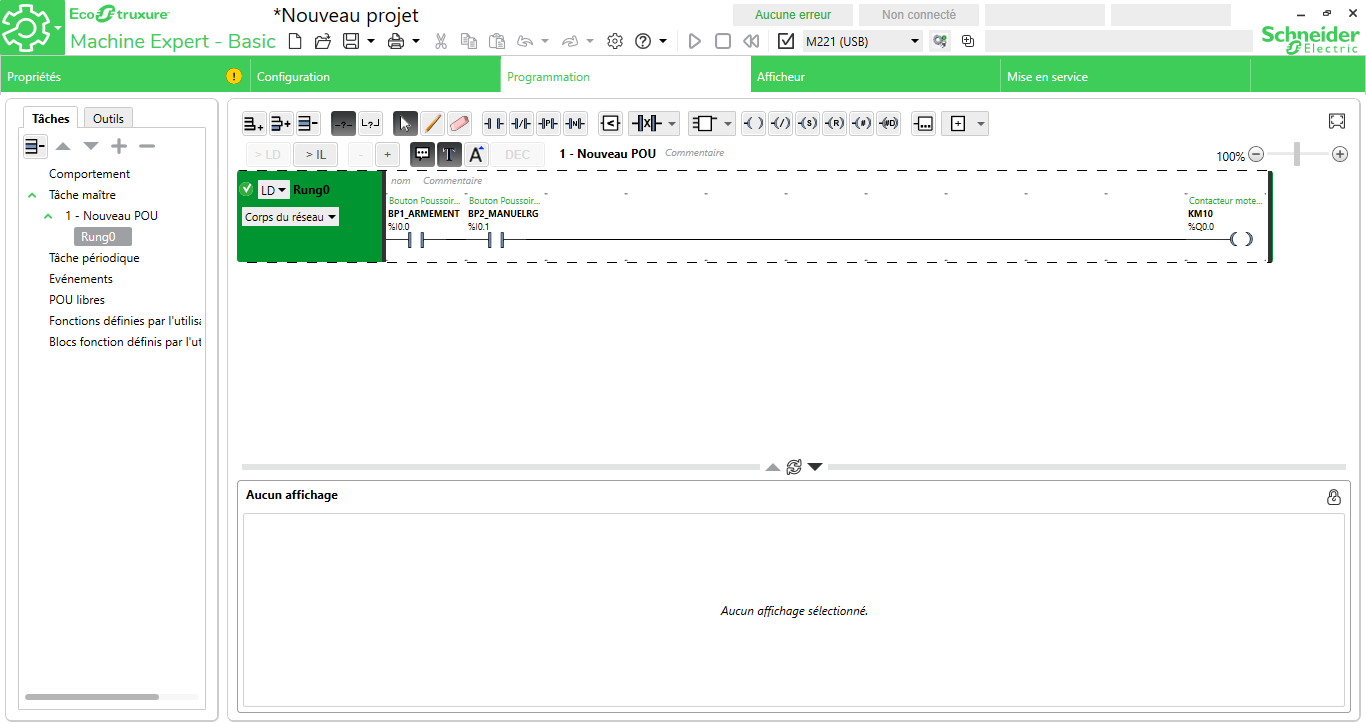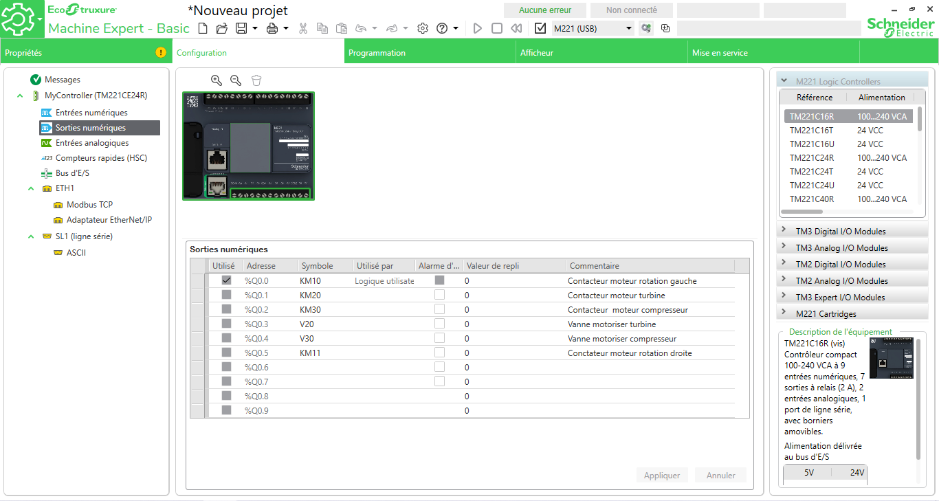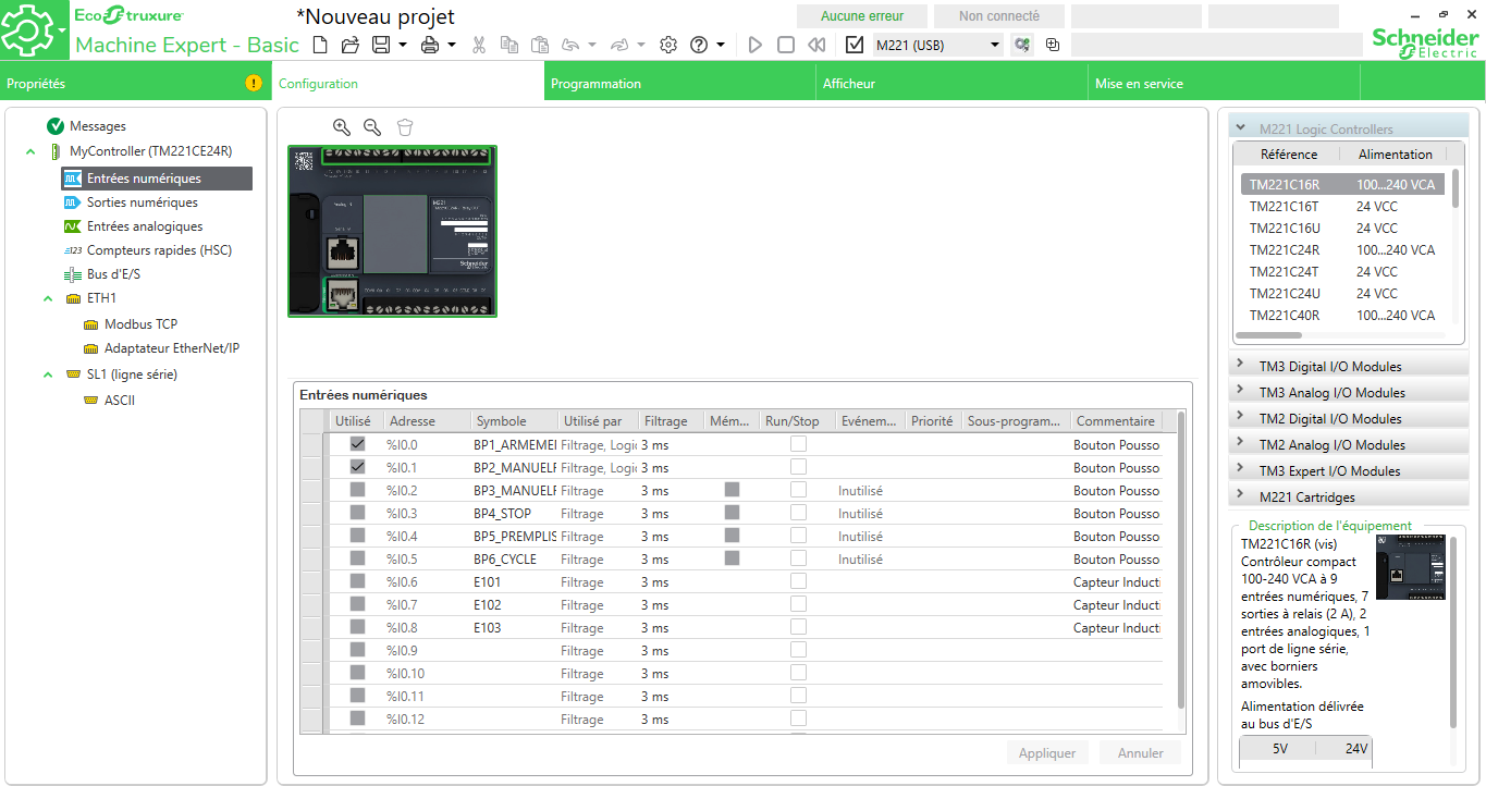Alors voila, pour vous situer le contexte, je suis électrotechniciens qui est faciné par l'automatisme, et j'essaye de monter un projet dans ma socièté avec un IHM et un M221.