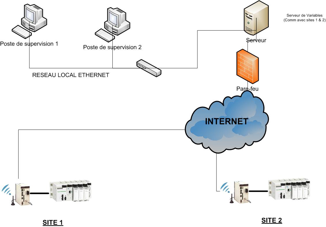 Je pense que c'est satisfaisant.sinced a écrit :3. Si on souhaite superviser 2 sites distants d'un site central avec 2 postes de supervision, est-ce que l'architecture ci-jointe conviendrait (du point de vue materiel) ? Telegestion.jpg