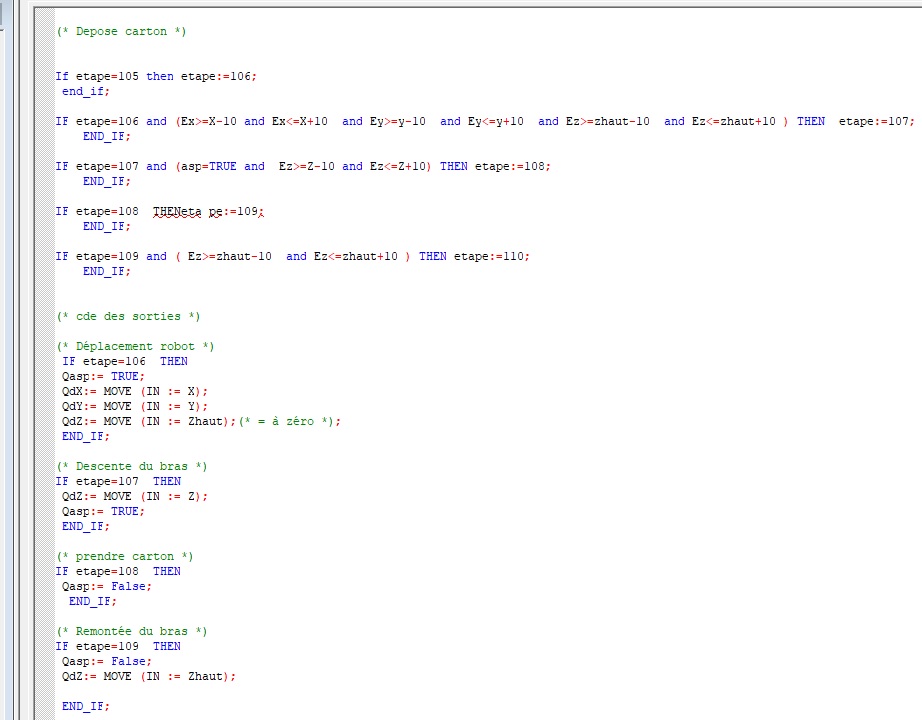 Voici maintenant le programme du robot ( pour un seul carton)écrit en ST dans une section MAST :