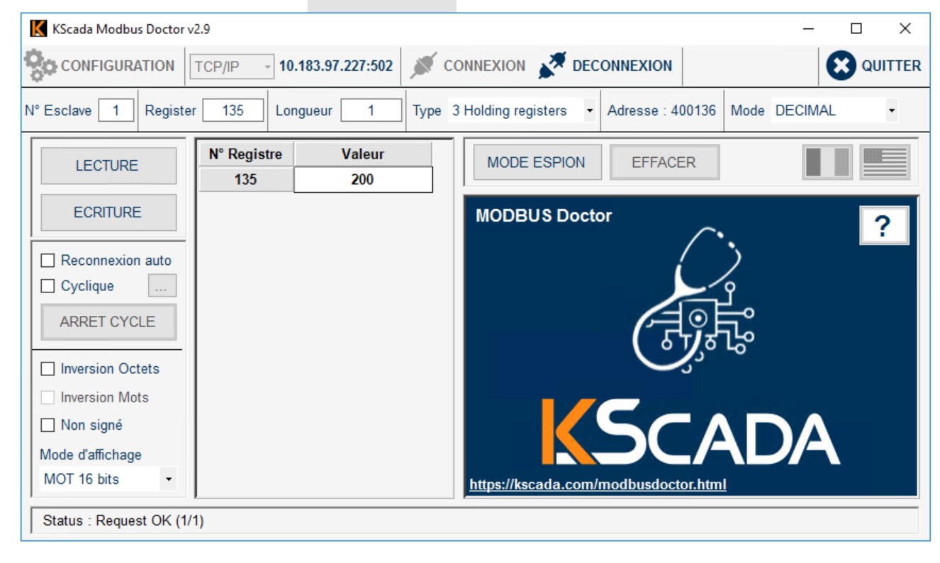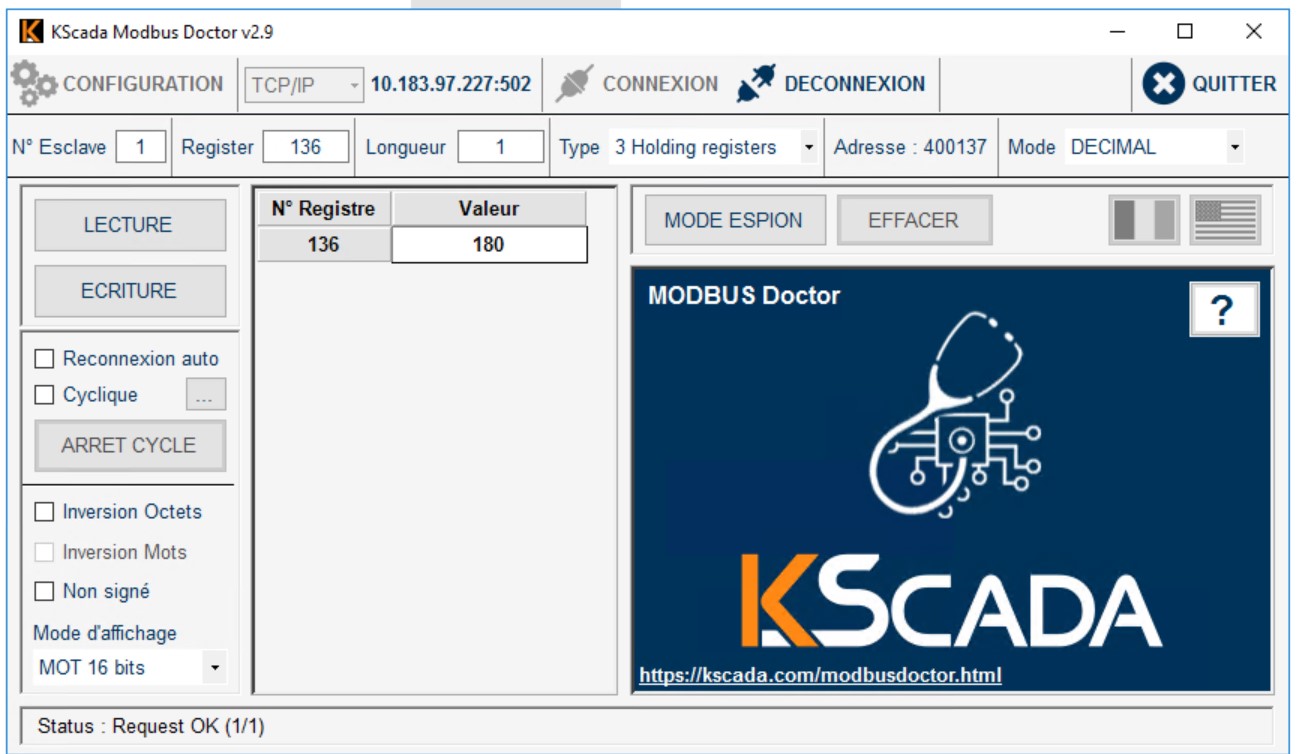 Bonjour, ce qui est étonnant c'est que cet automate (enfin chaudière) est relié a un serveur OPC (Kepserverex) sur la supervision actuelle (IWS), et que je n'ai pas eu ce soucis a l'époque, alors que j'avais le même phenomene avec Modbusdoctor.