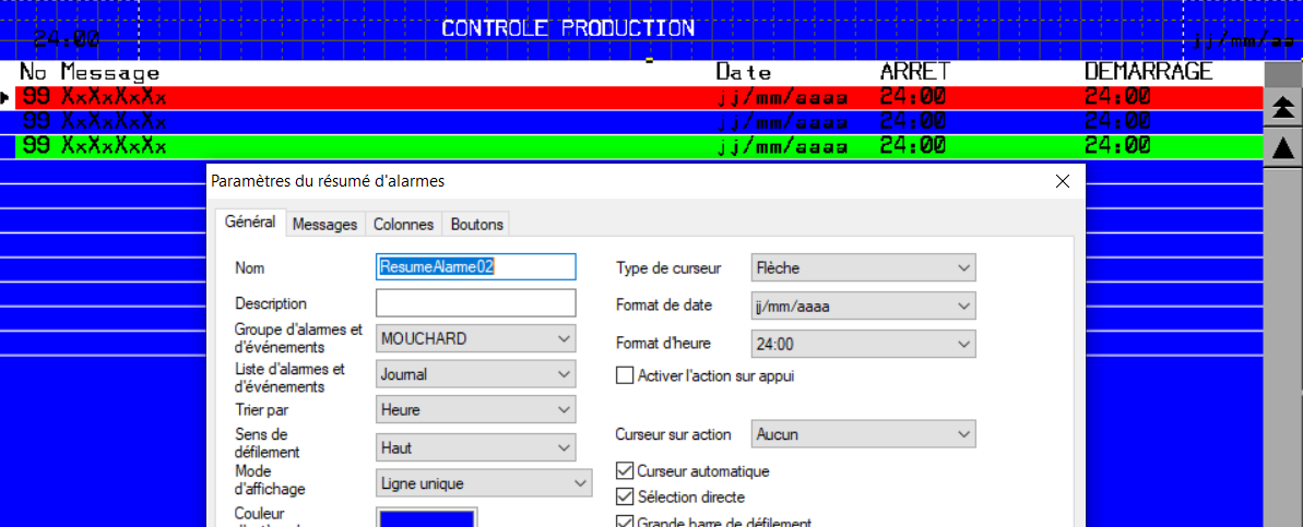 je cherche comment enregistrer les changements d'état de variables Bool sur un HMIGTO, pour savoir à quelle heure les entrées TOR correspondantes passent à 1 ou à 0 et afficher sur un résumé d'évenements.