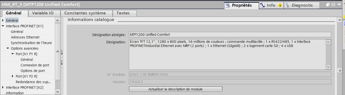 Etant donnée que ma version de logiciel était en WinCC Unified V19 udapte 3 j'ai télécharger le firmware sur le site siemens et mis le pupitre à jour, injection de mon ihm (en devant installer aussi la version sur mon ordinateur pour les images de pupitres)