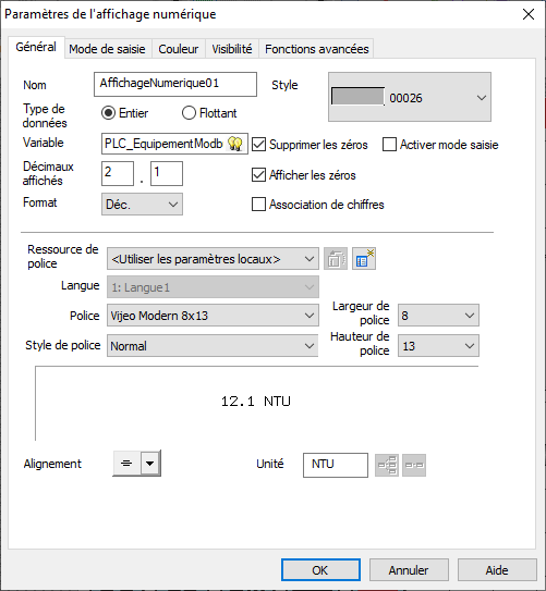 J'ai essayé à peu près tout mais pas moyen d'afficher 1 chiffre après la virgule, que ce soit sur le HMI ou sur la table d'animation de somachine basic je n'ai que des entiers.