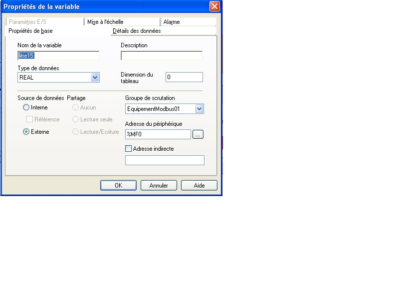 Ne pouvant pas tester la visualisation pour le moment, j'aimerais savoir si le paramétrage suivant est cohérent. C'est ma première utilisation de vijeo designer et j'espere ne rien avoir oublié