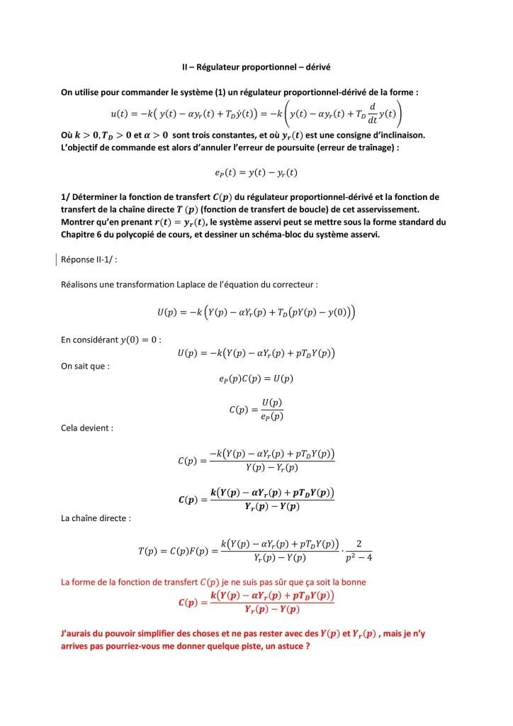 ma question consiste à déduire la fonction de transfert d'un correcteur PD partant de l'équation différentielle de sa sortie.