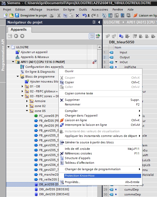 J'utilise la version V13+SP2 de TIA et je ne vois pas l'otpion que tu montres dans ta captures d'écran lorsque je fait un clic droit sur le DB.