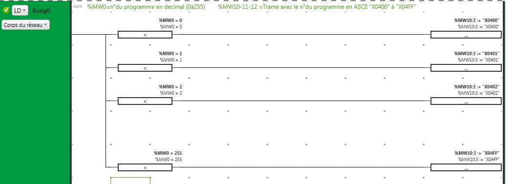la trame a transmettre est de type X04dd (dd) étant le numéro de programme à envoyer en (Hexa)