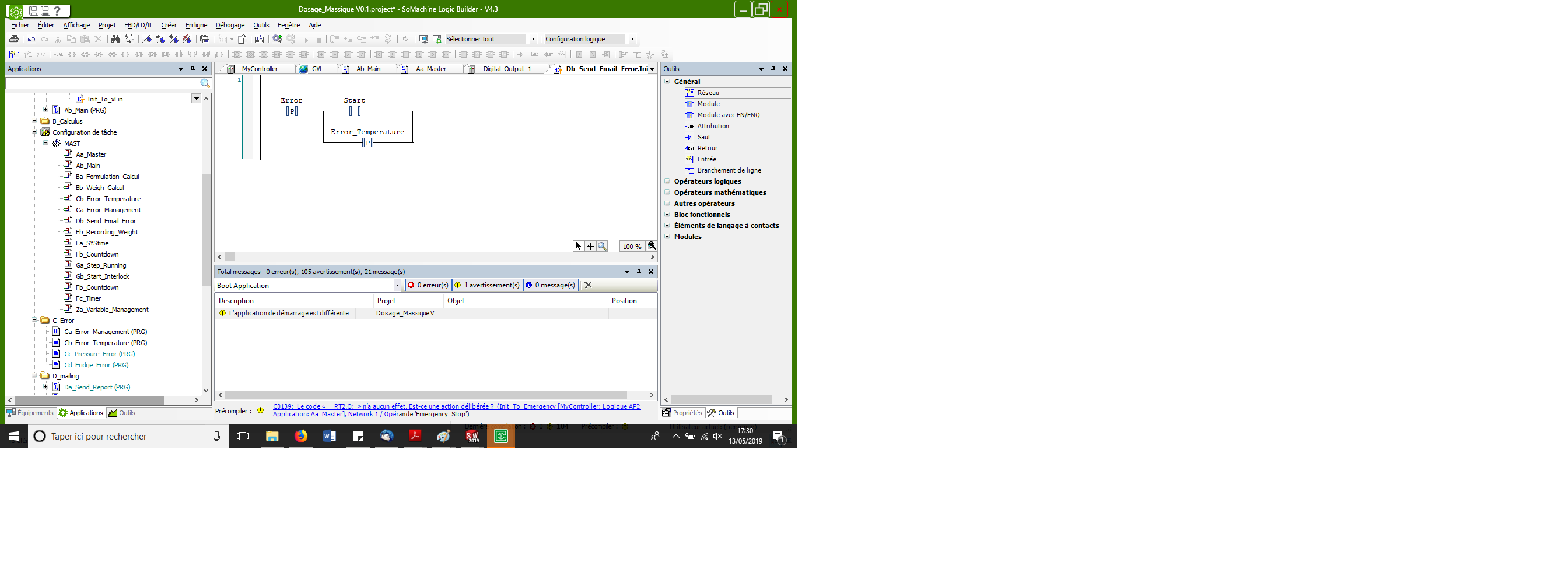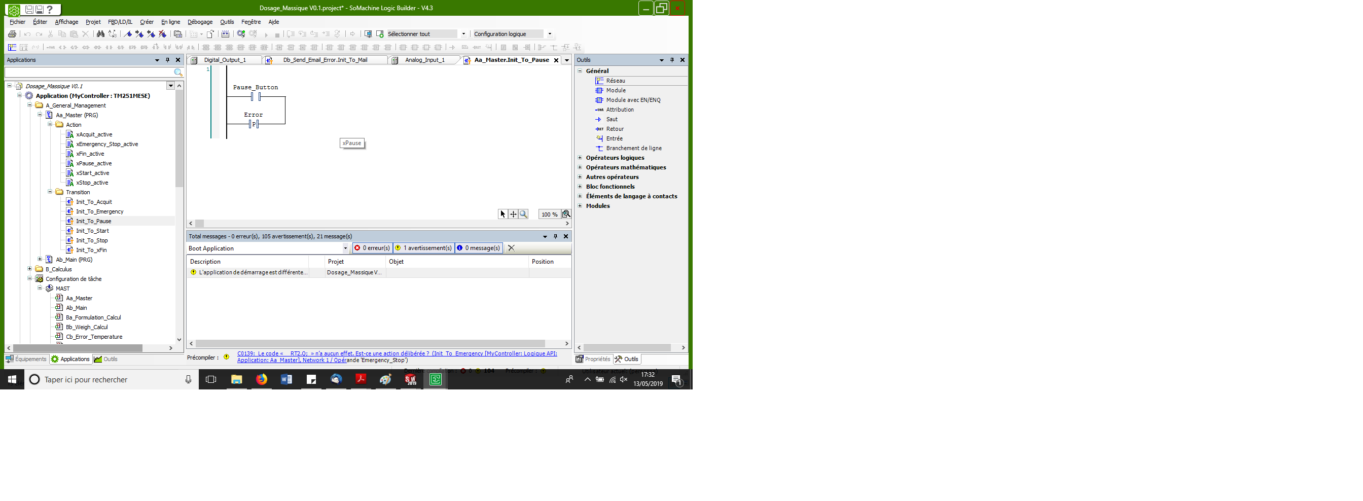 je n'arrive pas à comprendre le fonctionnement des fronts montants sur Somachine. J'ai une variable booléenne dans un POU, cette variable est déclarée en tant que global (GVL) mais quand je veux utiliser cette même variable avec détection de front montant dans une transition SFC rien ne se passe.