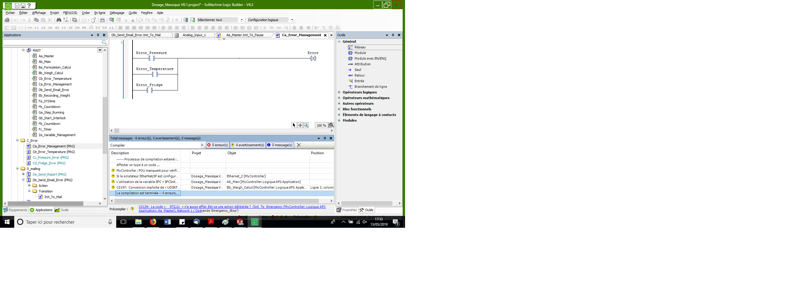 faut une bobine directe sur Error (et non pas une bobine SET)