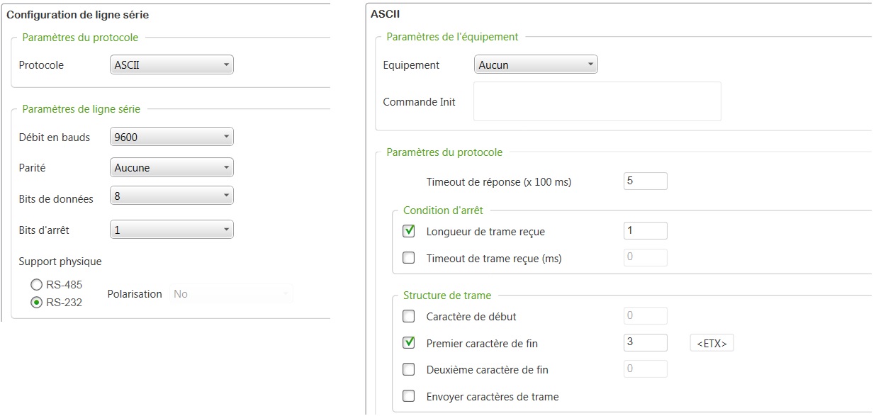 Voici les paramètres que j'ai configuré pour la liaison série, peux être une erreur.