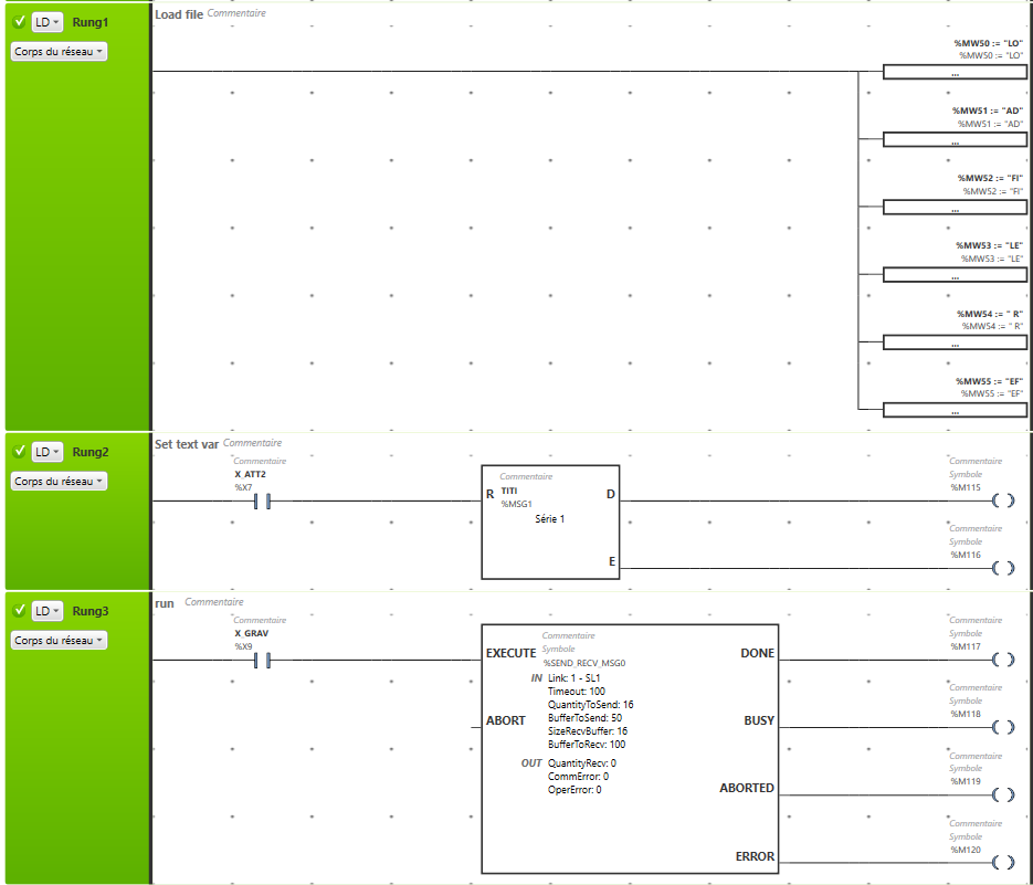 J'ai configuré les paramétrages de la liaison, mais je ne sais pas exactement quelle fonction utiliser (exchange, Send_rcv_msg) et la syntaxe à utiliser.