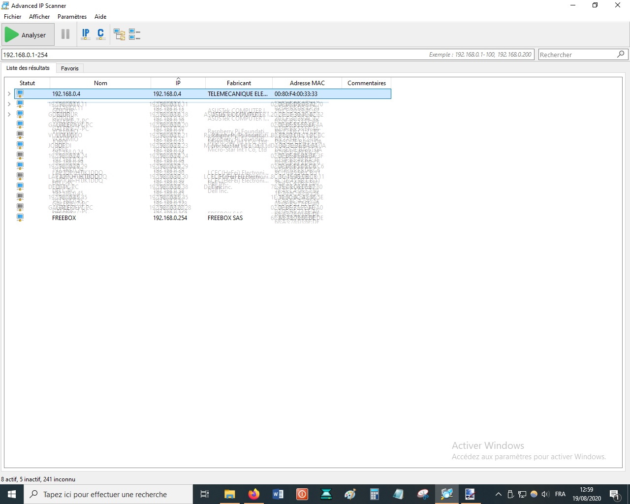 Je joint une capture d'écran du logiciel Advanced IpScanner qui permet de scanner un réseau privé et de donner des informations sur les