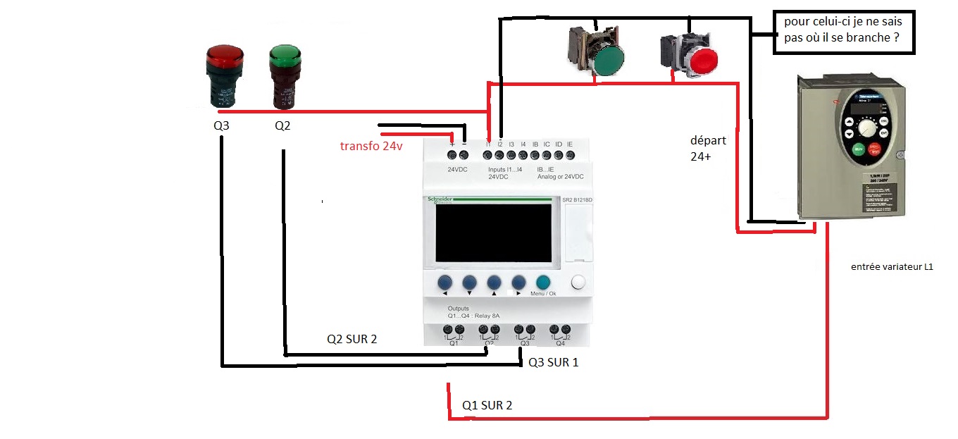 car j'aimerais que vous me confirmez le schéma électrique du zelio sur atv31 et si il faut que je mette une alimentation auxiliaire ou si je peux tout brancher sur l'alimentation du atv31