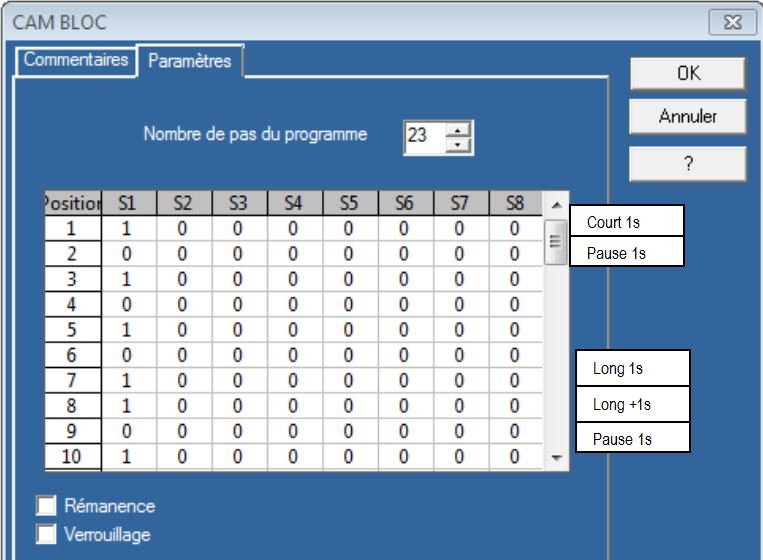 un extrait de la programmation de la CAME pour les S.O.S en Morse, lol