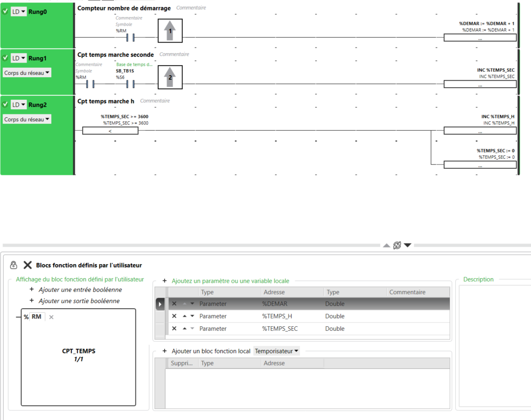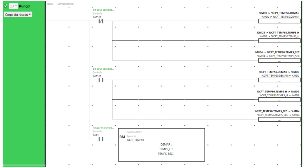 Le problème est que si je veux faire une modification du programme toute ces valeurs seront supprimés car même avec une sauvegarde des valeurs mémoire via le fichier memories.csv et ni les mots %S93, %S94 ne sauvegardent les valeurs des paramètres d'un bloc fonction.