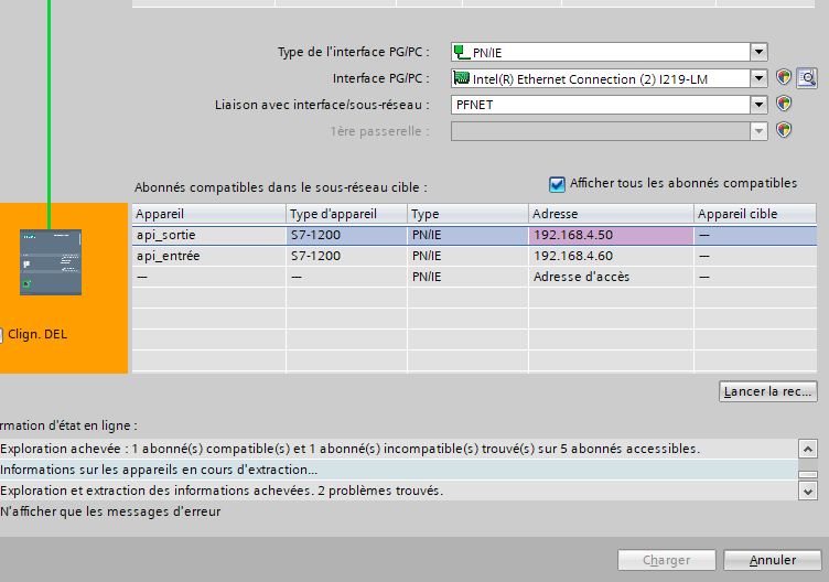 merci, je viens de voir que en défilent les erreurs il me dit que "l'adresse de l'appareil est en conflit avec celle du projet". J'ai contrôlé chaque adresse ip dans le logiciel et celle des automates et tout va bien. Du coup j'ai essayer le télécharger le programme sur un autre ordi et ça a marché sans soucis, c' est possible que le pb viennent de mon ordi ?